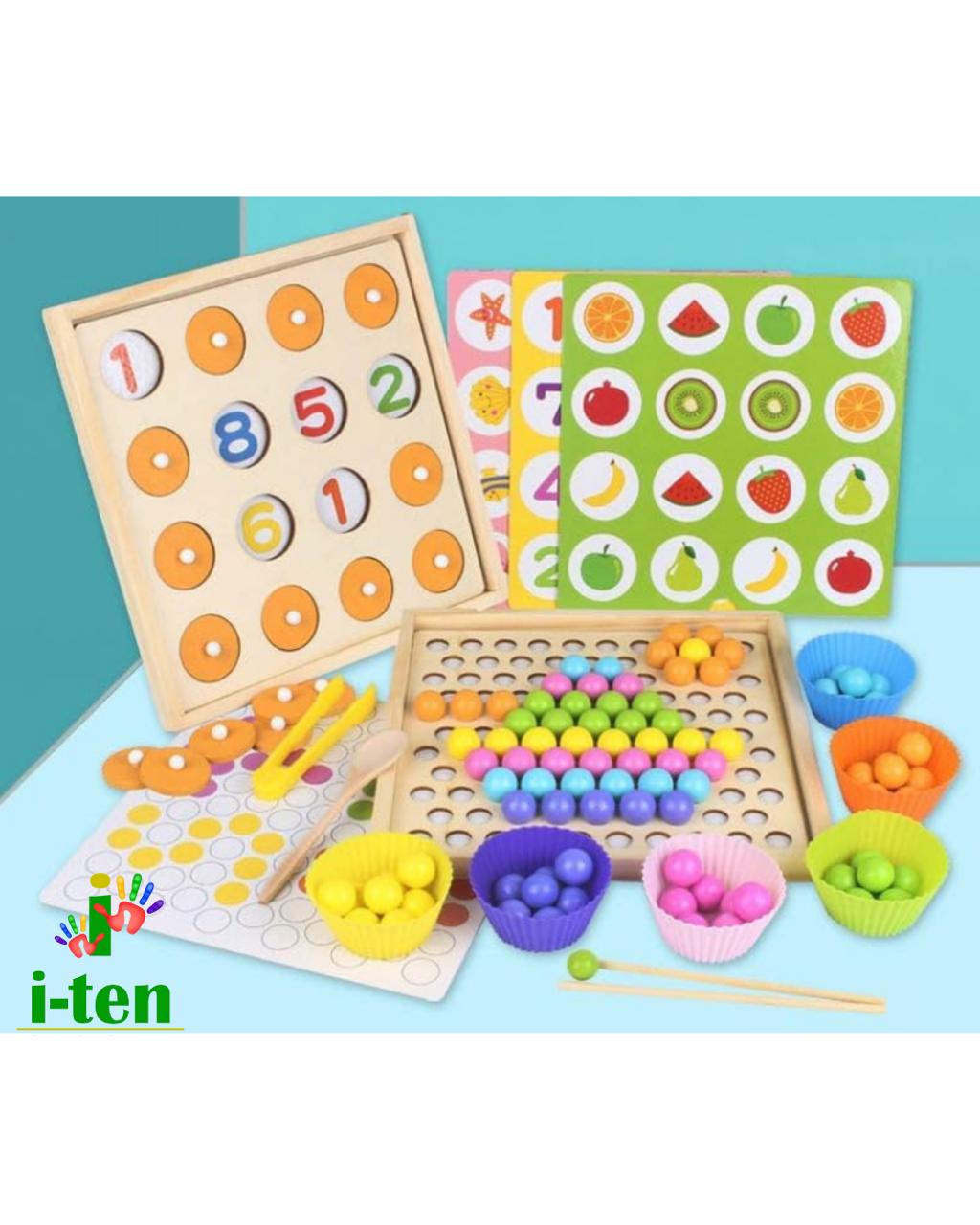 The beads and cups are arranged on the board following a specific pattern, and the child tries to remember and recreate the pattern. The difficulty levels increase gradually to match the child's developing abilities.